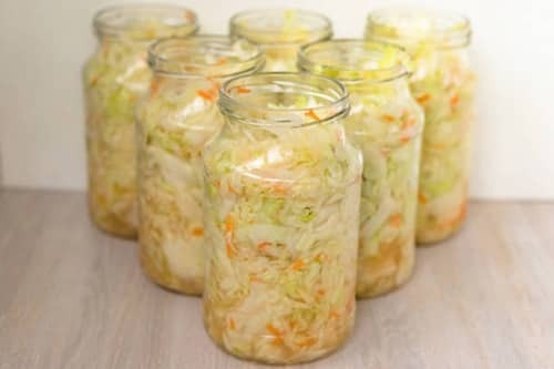 В комнатных условиях капусту выдерживают не больше 3 дней, к этому моменту брожение уже завершится, и продукт полностью готов. Затем квашеную капусту убирают на хранение в помещение с температурой 0-2 градуса тепла. В таких условиях она может простоять несколько месяцев, не теряя хрусткости и вкуса. В холодильнике держать ее также можно, но срок хранения квашеной капусты будет меньше, так как температура там все-таки немного выше оптимальной.