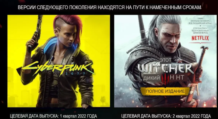 Первоначально планировалось, что игры нового поколения будут выпущены в этом году, но в октябре версии PS5 и Xbox серии X/S как для киберпанка 2077, так и для Ведьмака 3: Дикая охота были отложены до 2022 года, причем первые должны были выйти в первом квартале, а вторые-во втором квартале.