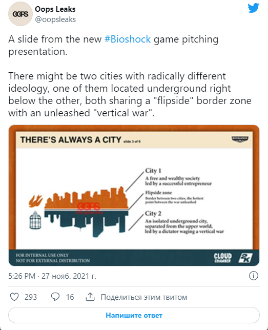 Также сообщается, что в BioShock Isolation будет два города, один из которых окажется подземным. Между ними расположится некая пограничная зона. Это следует из слайда, опубликованного источником.