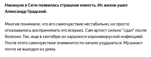 Врачи сделали все, чтобы помочь Александру Борисовичу, но, к несчастью, не смогли. Свои соболезнования близким и родным артиста принес и Владимир Путин. На официальном сайте опубликованы слова поддержки в связи с уходом артиста. Он указал, что музыкант был "бесконечно талантливым и неординарным человеком".