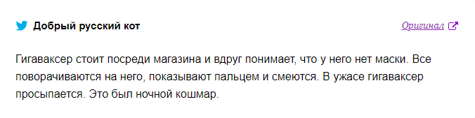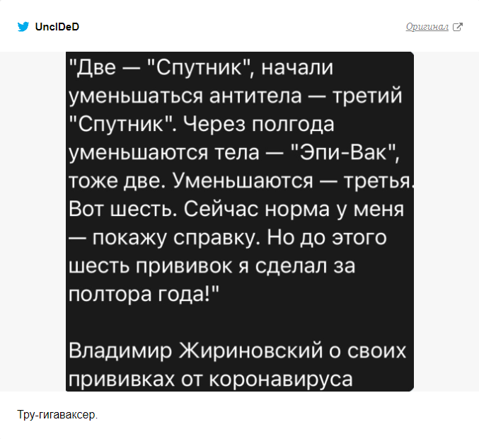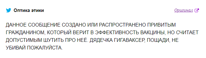 Пользователь твиттера Оптика этики в своём посте описал чувства обычного вакцинированного гражданина перед гигаваксером.