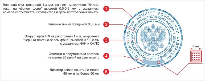 • Форма. Печать традиционно имеет круглую форму. К размеру и содержанию имеется ряд требований в зависимости от ее вида. Штамп обычно прямоугольный, но строгих ограничений нет.