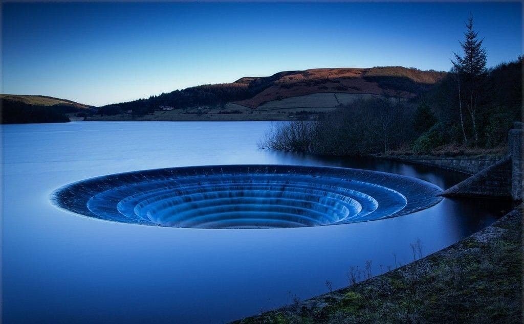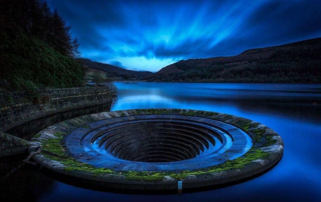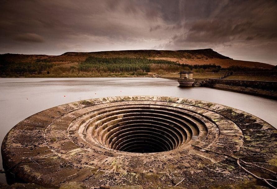 Нет, на фото не запечатлены проделки инопланетян и прочих жидомассонов. Это странное место - всего лишь водохранилище Ледибауэр, расположенное в английском графстве Дербишир. Строительство закончилось в 1945 году.