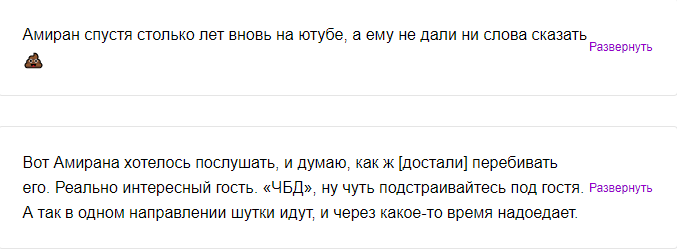 А некоторые фанаты Амирана Сардарова разочаровались в кумире — комментаторы посчитали, что тот мог «перебороть» ведущих, но в итоге не выдержал давления комиков быстрее остальных гостей шоу.