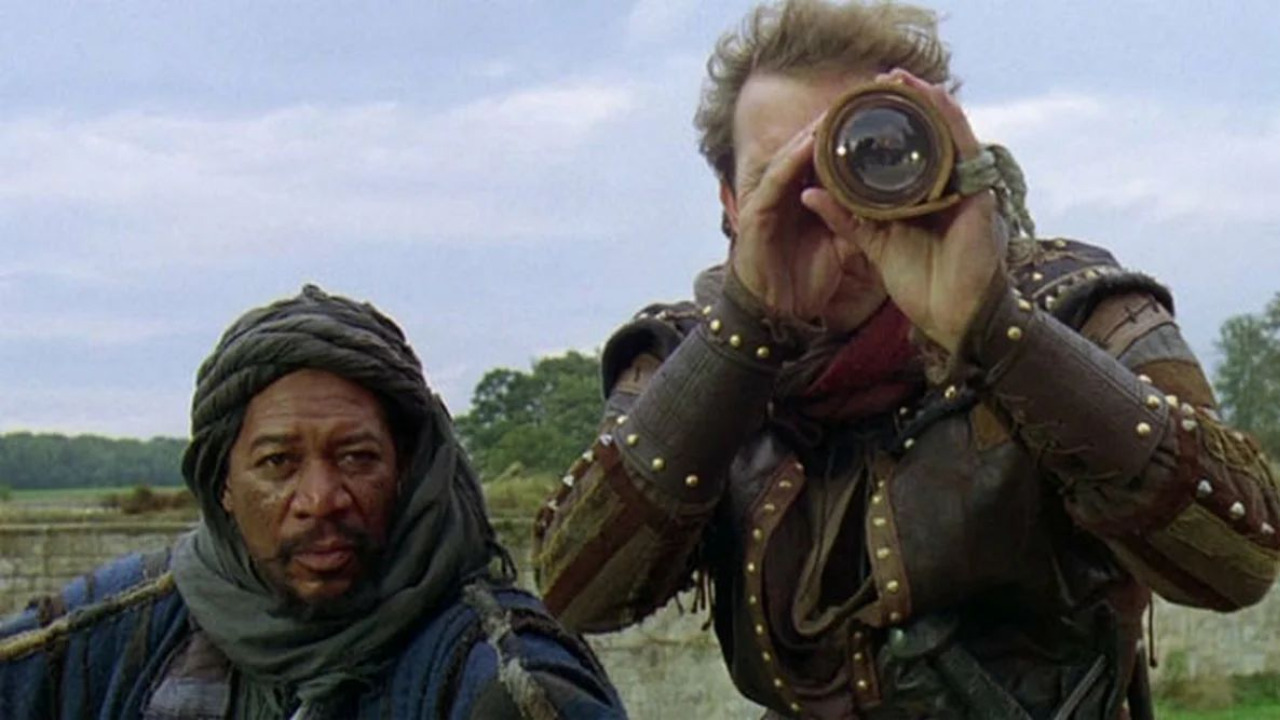 Рассказывают, что когда Кевин Костнер пришел на первую примерку, художник по костюмам решил пошутить и разложил перед звездой ярко-зеленое трико. Вообще команда костюмеров очень старалась отойти от зеленого трико и сделать все в приглушенных тонах, которые больше соответствуют тому времени. Например, свадебное платье Мэрион шито из шелка. Сам художник-костюмер признавал, что это неправильно исторически. Ну, и классика. Робин Гуд пользуется в 14 веке подзорной трубой, которая была изобретена в 17 веке. Опять поторопились.