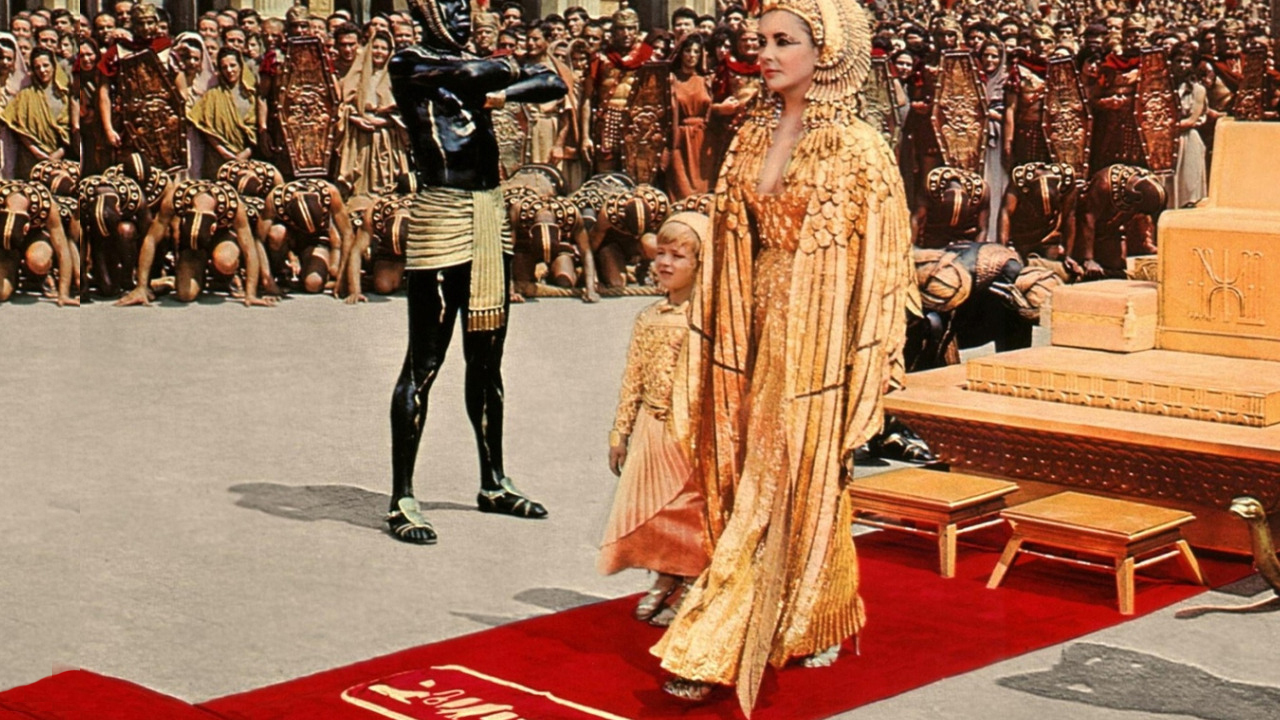 По мнению Зума Ужасного, здесь все принесено в жертву Элизабет Тейлор. И до 1996 года в «Книге рекордов Гиннеса» «Клеопатра» была отмечена, как фильм с самым большим переодеванием актрисы. Костюмы подчеркивают ее фигуру, выделяя талию и подчеркивая бюст. Соответствие времени старались создать деталями. Но самый потрясающий момент, это туфли на высоких каблуках…