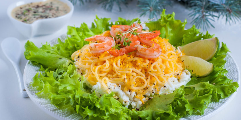 Любители морепродуктов высоко оценят этот легкий салат на Новый год 2022. Сочетание ингредиентов в нем просто идеальное. Рецепт с фото очень подробный и понятный.