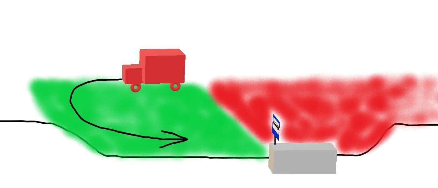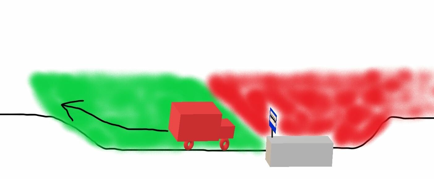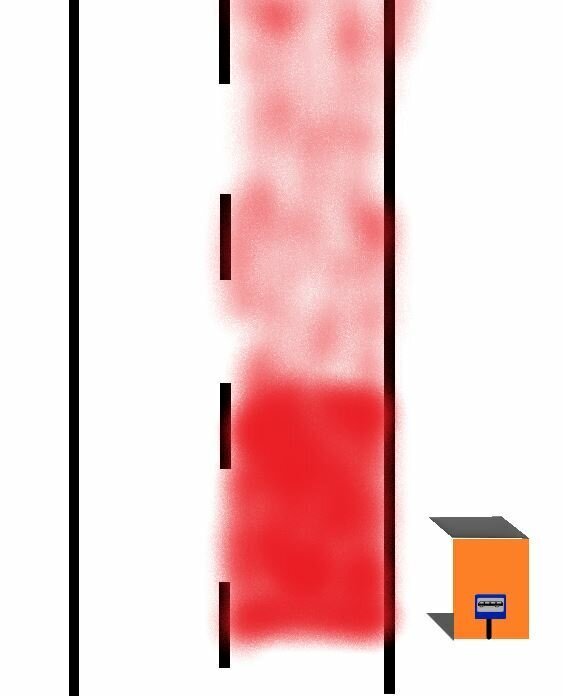 Непосредственно вблизи остановочного павильона (опять же чисто из здравого смысла) - еще место остановки (выделено ярким цветом), а дальше (туманом) - до какого места?