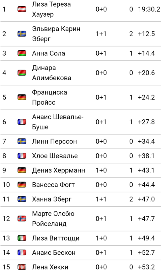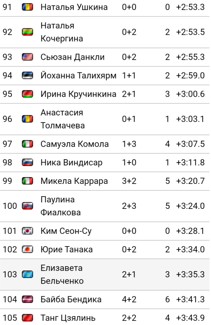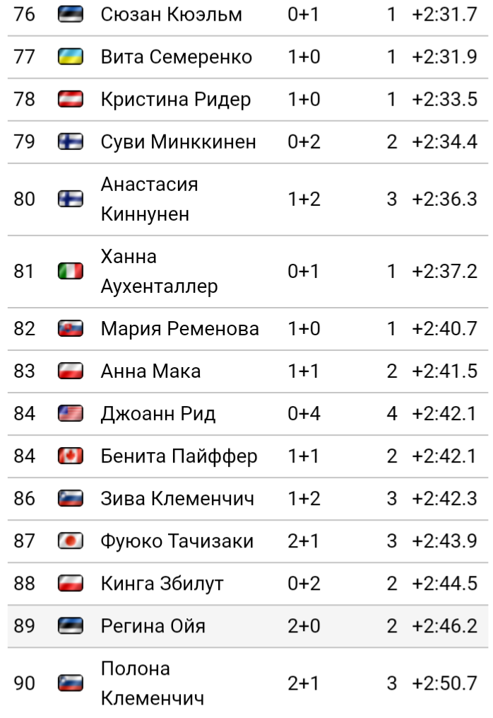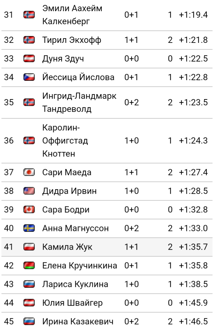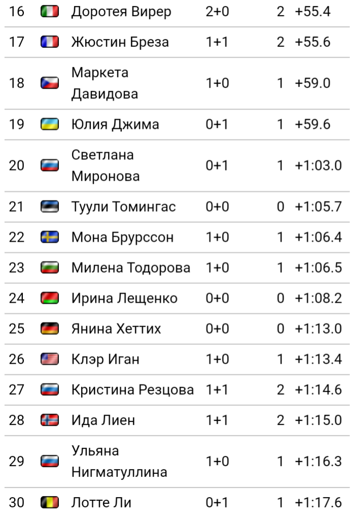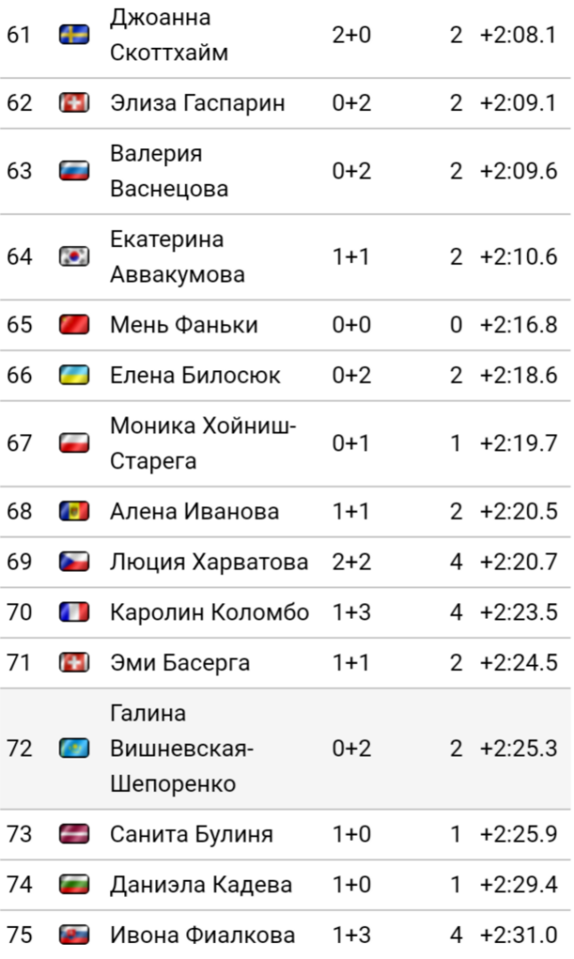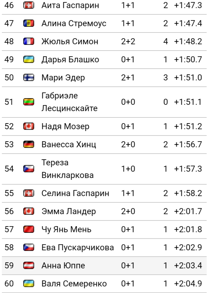 Меня лично удивило если честно 60-е место Вали Семиренко, Украинской биатлонистки которая уже не раз занимала высокие и победный места.