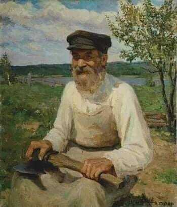 Раньше жили не спеша. Выходили замуж, рожали детей в более или менее спокойной обстановке, болели обстоятельно – лежа в постели по целым месяцам, не спеша выздоравливали и почти ничем, кроме хозяйства, не занимались. Без докторов, без нудных анализов, без анкет. Наша нянька, заболев, на вопрос «Что с тобой?» отвечала всегда одно: «Шось мене у грудях пече». А болезни-то были разные. Умирали тоже спокойно. Бывало, дед какой-нибудь лет в девяносто пять решал вдруг, что умирает. А и пора уже давно. Дети взрослые, внуки уже большие, пора землю делить, а он живет. Вот съедутся родственники кто откуда. Стоят. Вздыхают. Ждут. Дед лежит на лавке под образами в чистой рубахе день, два, три… не умирает. Позовут батюшку, причастят его, соборуют… не умирает. На четвертый день напекут блинов, оладий, холодца наварят, чтобы справлять поминки по нем, горилки привезут ведра два… не умирает. На шестой день воткнут ему в руки страстную свечу. Все уже с ног валятся. Томятся. Не умирает. На седьмой день зажгут свечу. Дед долго и строго смотрит на них, потом, задув свечу, встает со смертного одра и говорит: « Ни! Не буде дила!» И идет на двор колоть дрова. Александр Вертинский Картина Ильи Глазунова "Старик с топором".