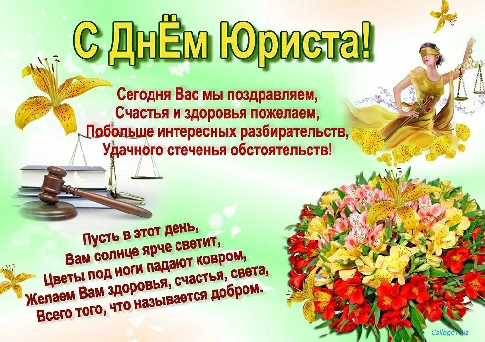 Поздравляем представителей юридической профессии с праздником, желаем успехов и новых свершений в трудовой деятельности, слаженной работы в коллективе, благодарных и отзывчивых клиентов, повышения доходов, здоровья и удачи!