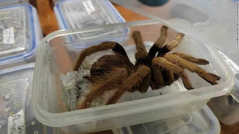 В заявлении природоохранного ведомства Боготы говорится, что в столичном аэропорту Эльдорадо были конфискованы по меньшей мере 232 тарантула, 67 тараканов, девять яиц паука и скорпион с семью детенышами.