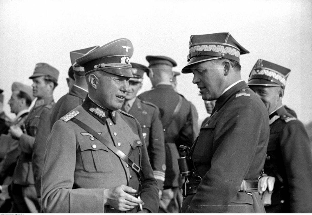 Польская кампания немецкого Вермахта началась 1 сентября и уже в первый день войны, прямо 1-го сентября из Варшавы сбежал президент, а 5 сентября за ним почти в полном составе последовало и правительство Польши - трусливо бежали в Румынию. Свой последний приказ "героический главнокомандующий" польской армии Эдвард Рыдз-Смиглы отдал 10-го сентября и после этой даты он уже не выходил на связь. Отгадайте почему и где он объявился? Правильно. В Румынии. В последнем своём приказе он приказал польским частям держать оборону до последнего патрона и ждать помощь от Англии и Франции.