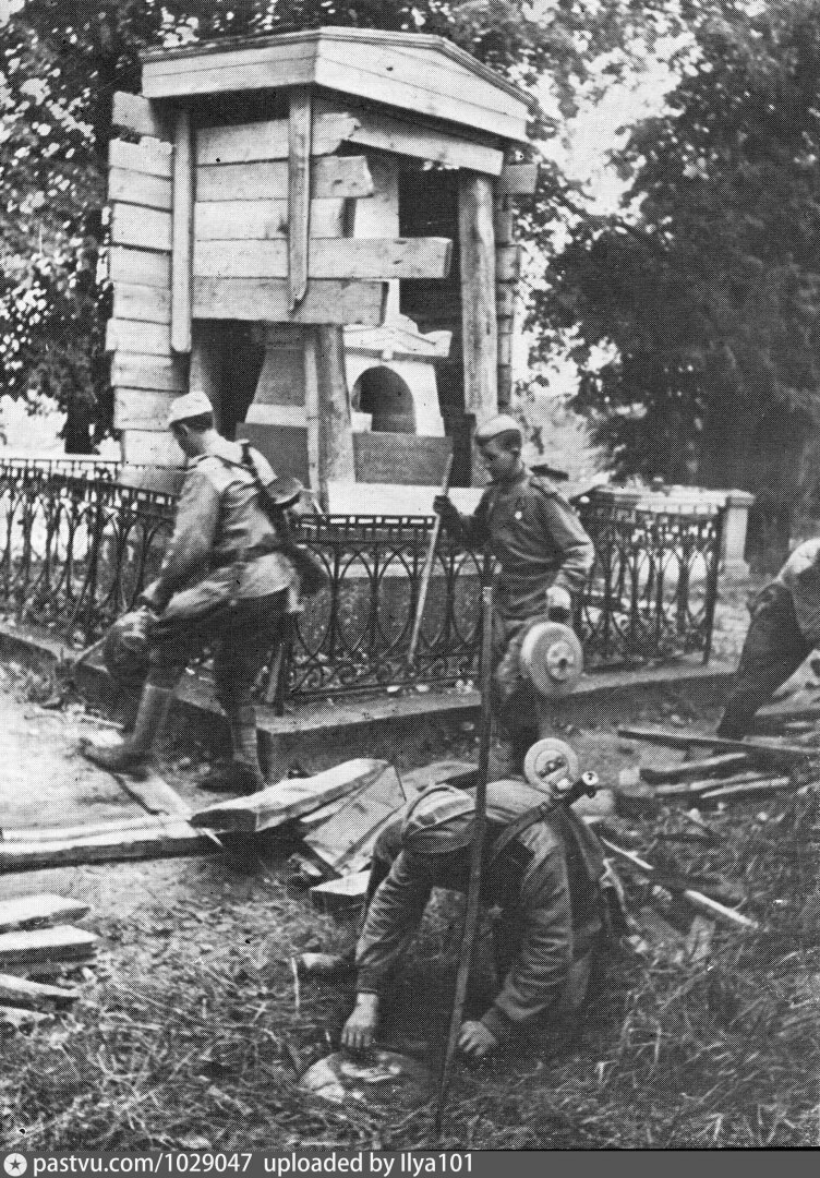 "Кощунственное отношение немцев к национальным святыням русского народа ярче всего обнаруживается в надругательстве и осквернении могилы Пушкина. Стремясь охранить Пушкинский Заповедник от опасности разрушения, части Красной армии оставили этот район без боев и отошли к Новоржеву. Несмотря на это, 2 июля 1941 года немцы подвергли бомбардировке Святогорский монастырь, у стен которого находится могила Пушкина.