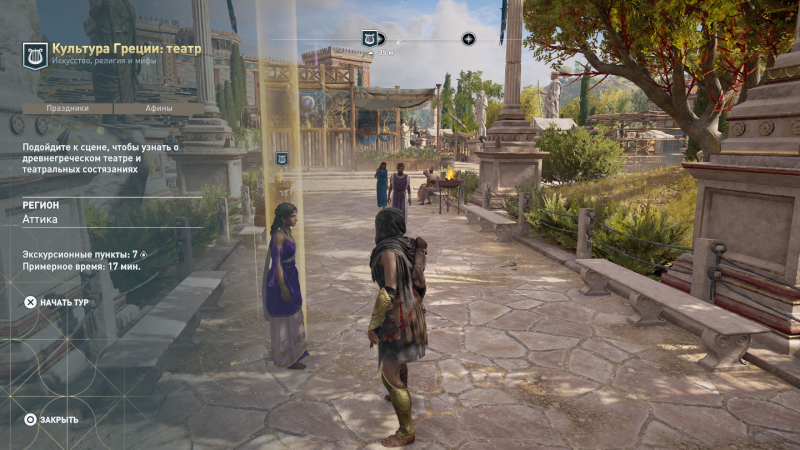 В Assassin's Creed Odyssey предусмотрен познавательный режим «Интерактивный тур», представляющий возможность изучить культуру и историю Древней Греции, буквально гуляя по её античным улочкам и общаясь с известными историческими личностями