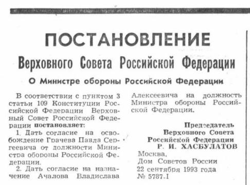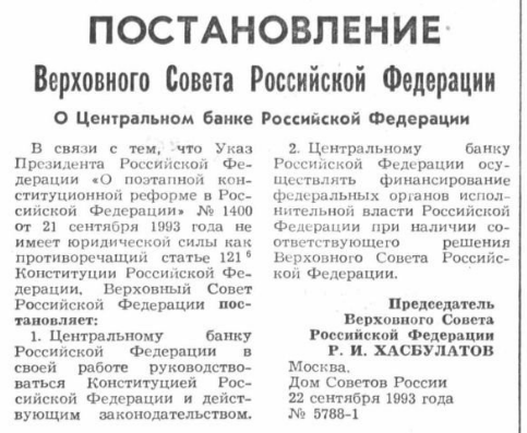 Вероятно связано с событиями первых чисел октября 1993 года.