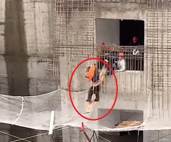 Строители проявили смекалку и протянув доски, создали бедняге опору для ног, после чего спасли коллегу. Вовремя заметили и подоспели на помощь.