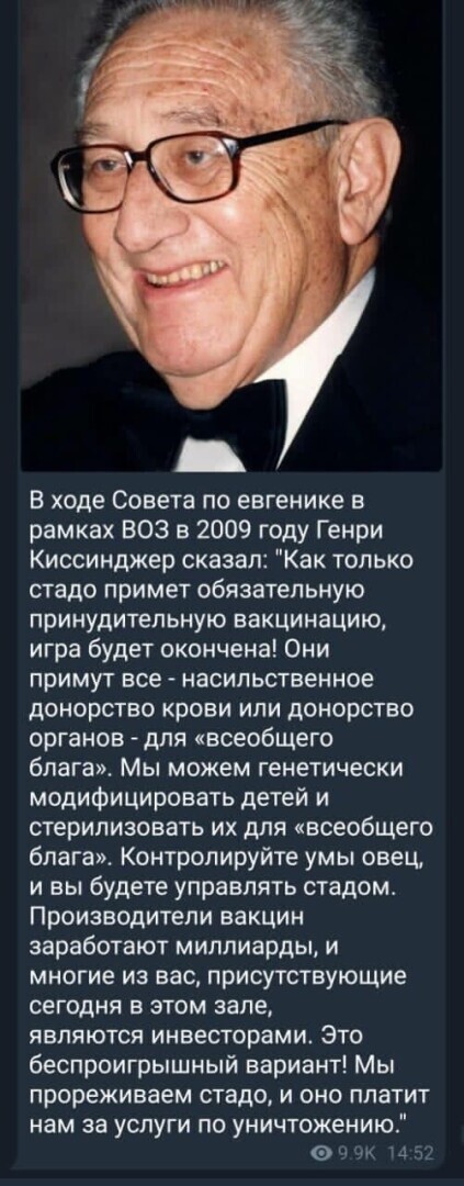 Перед нами довольно несложная схема перехода. «Эпидемия» - первый этап. Вторым этапом является «вакцинация». Третий этап — кодирование населения планеты в той части, которая теоретически будет взята в «новую нормальность». За получение кода, дающего право и на переход и (главное) — на шанс выживания при переходе (причем это именно шанс, а не гарантия), придется заплатить согласием на вакцинацию.
