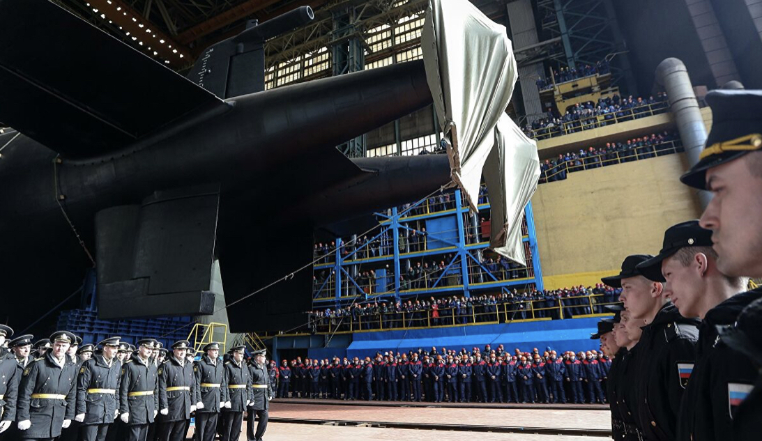 Атомная подводная лодка Белгород во время спуска на воду на АО Производственное объединение Севмаш в Северодвинске - РИА Новости, 1920, 12.11.2021