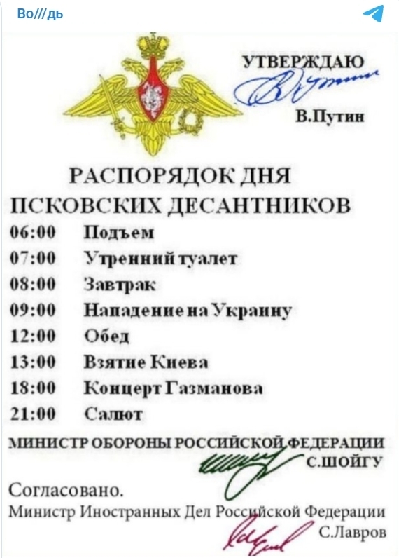 Чем больше публикуют планов русского вторжения на Украину, написанных США, тем смешнее становится на нашей стороне. Так, на очередной пафос Штатов русские ответили анекдотом. Но, как известно, в каждой шутке есть доля...