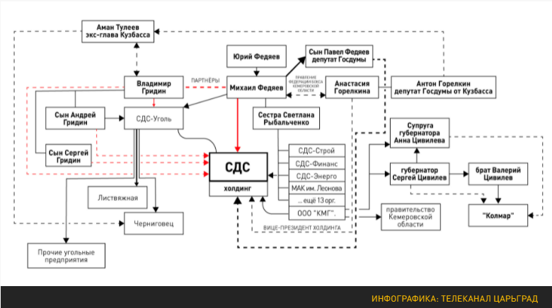 Наши источники сообщают, что Федяев умудрился не только сохранить позиции, несмотря на отставку Тулеева, но и укрепить их, подружившись с новым губернатором – Сергеем Цивилёвым. Кстати, тот также в недавнем прошлом имел самое прямое отношение к углепрому. До того как сначала уйти на пост замглавы региона, а потом занять кресло Тулеева (ушедшего после пожара в "Зимней вишне"), он возглавлял компанию "Колмар Групп", которая занималась добычей угля.