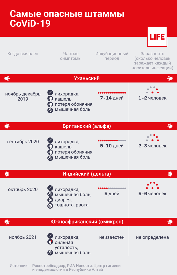Его инкубационный период пока не известен, уровень контагиозности тоже ещё выясняется, и тем не менее ВОЗ по поводу его появления решила созвать экстренное совещание, чтобы передать по всему миру сигнал тревоги. Пока речь идёт о десятках подтверждённых случаев "омикрона", но у медиков есть подозрения, что этот штамм распространяется ещё более молниеносно, чем все остальные. Примечательно, что "омикрон" считают опасным для людей с уже наработанным иммунитетом против ковида — например, для переболевших. То есть имеющиеся в нашем распоряжении антитела могут оказаться, мягко говоря, не так эффективны, как хотелось бы. С другой стороны, южноафриканские врачи утверждают, что пока симптомы "омикрона" не вызывают особого ужаса: чаще всего это повышенная утомляемость и головная боль. И даже редко у кого поднимается температура.