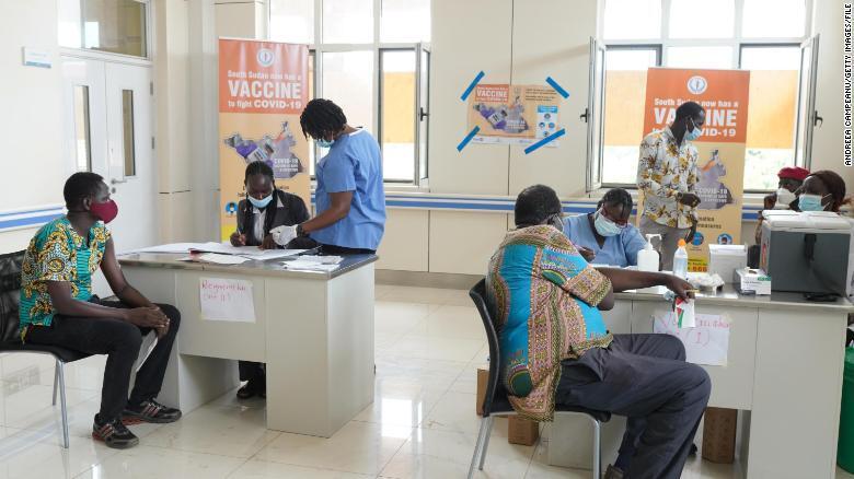 Персонал получает вакцину против Covid-19 в больнице в Южном Судане.