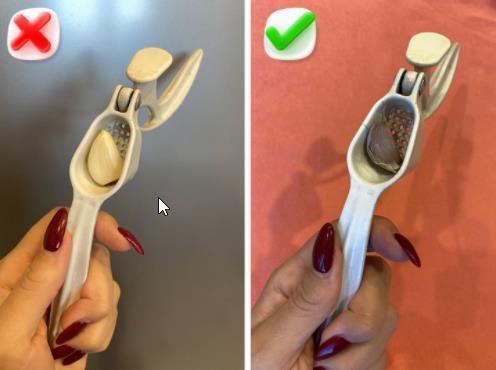 Давить чеснок еще проще и быстрее, чем мы думали. Не нужно очищать зубчики от шелухи, достаточно положить их в чеснокодавку как есть — и вуаля! Шелуха останется внутри, а мякоть выйдет наружу.