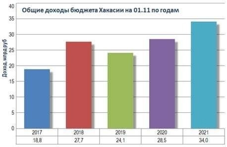 3. Собственные доходы бюджета составили 22.4 млрд руб, что на 8.27 млрд руб (58.4%) выше, чем в 2020 году. Такой впечатляющий рост обусловлен эффектом низкой базы в сравнении с кризисным коронавирусным 2020 годом. Но и в сравнении с 2019 годом рост доходов довольно приличный – 5 млрд руб (28.9%). И даже на 2 млрд руб выше, чем доходы 2018 года, когда Эдуард Худайнатов разово заплатил в Хакасии НДФЛ в размере 5.15 млрд руб. Исполнение бюджета по собственным доходам 91.5%
