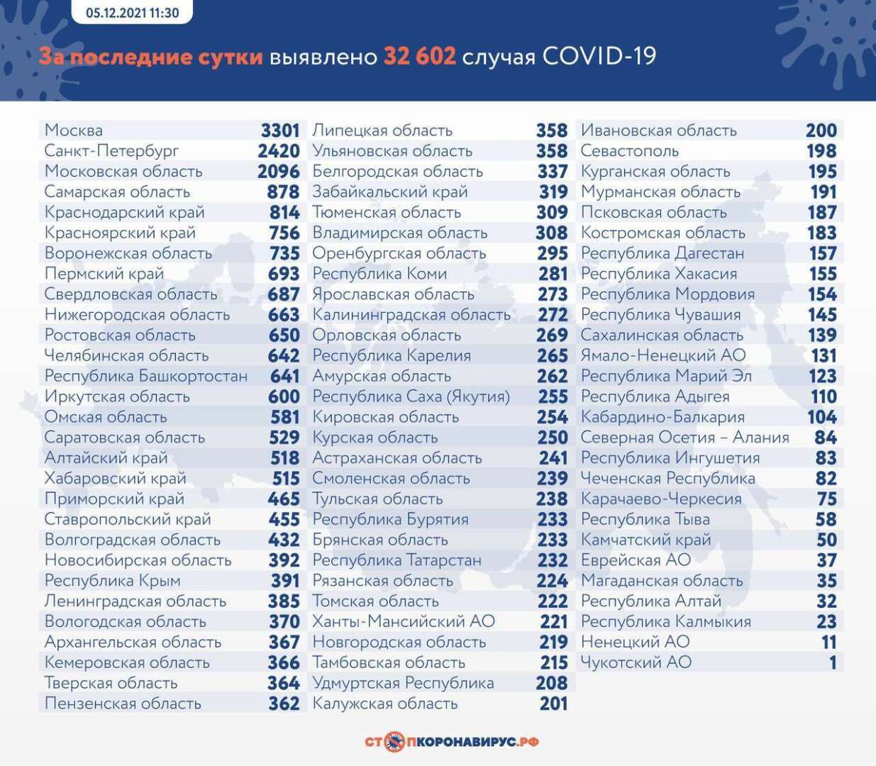 Статистика коронавируса в Санкт-Петербурге на 6 декабря 2021 года