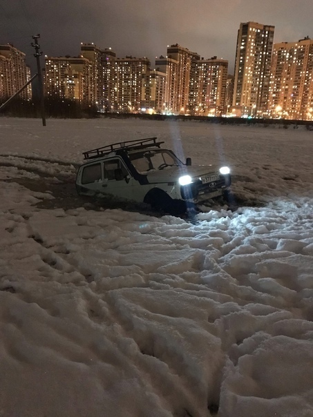 На Парнасе на пустыре напротив дома 3к1 по Валерия Гаврилина Нива провалилась под лед. Если бы вовремя не помогли вытащить, то к утру возможно бы вмерзла до весны....