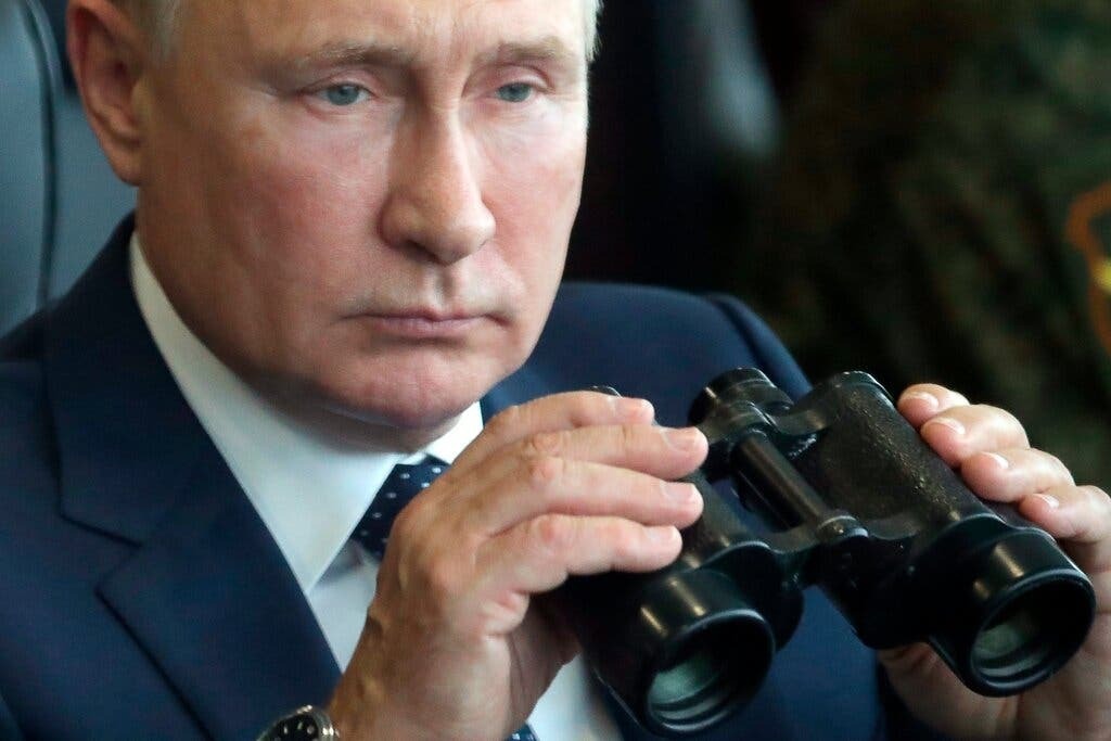 Президент России Владимир Путин наблюдает за военными учениями в сентябре.Кредит ...Фото бассейна Сергея Савостьянова.