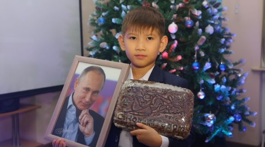 Вместо акций мальчику вручили на предновогоднем мероприятии в Бишкеке портрет Путина с автографом, тульский пряник и термокружку, аналогичную той, что стоит на столе президента, сообщается на сайте Россотрудничества.