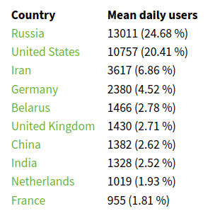 [2021] Россия вышла на первое место по количеству пользователей услугами TOR через мосты.