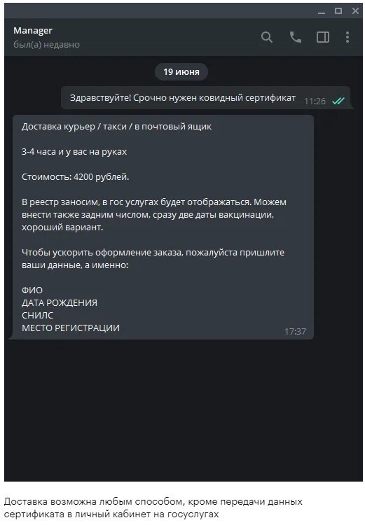 Прививки хотят делать не все — и уже появился черный рынок поддельных и фальсифицированных сертификатов и справок. Мошенники обещают сделать их в любом виде: с проводкой через госуслуги и без нее. А еще за деньги готовы оформить отрицательный ПЦР-тест.