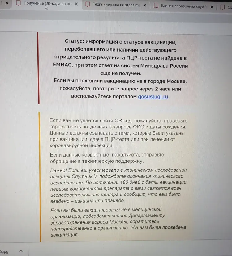 -можно поискать QR-код на сайте immune.mos.ru. Если и здесь система покажет, что кода нет, то нужно проверить указанный СНИЛС (нет ли ошибки),