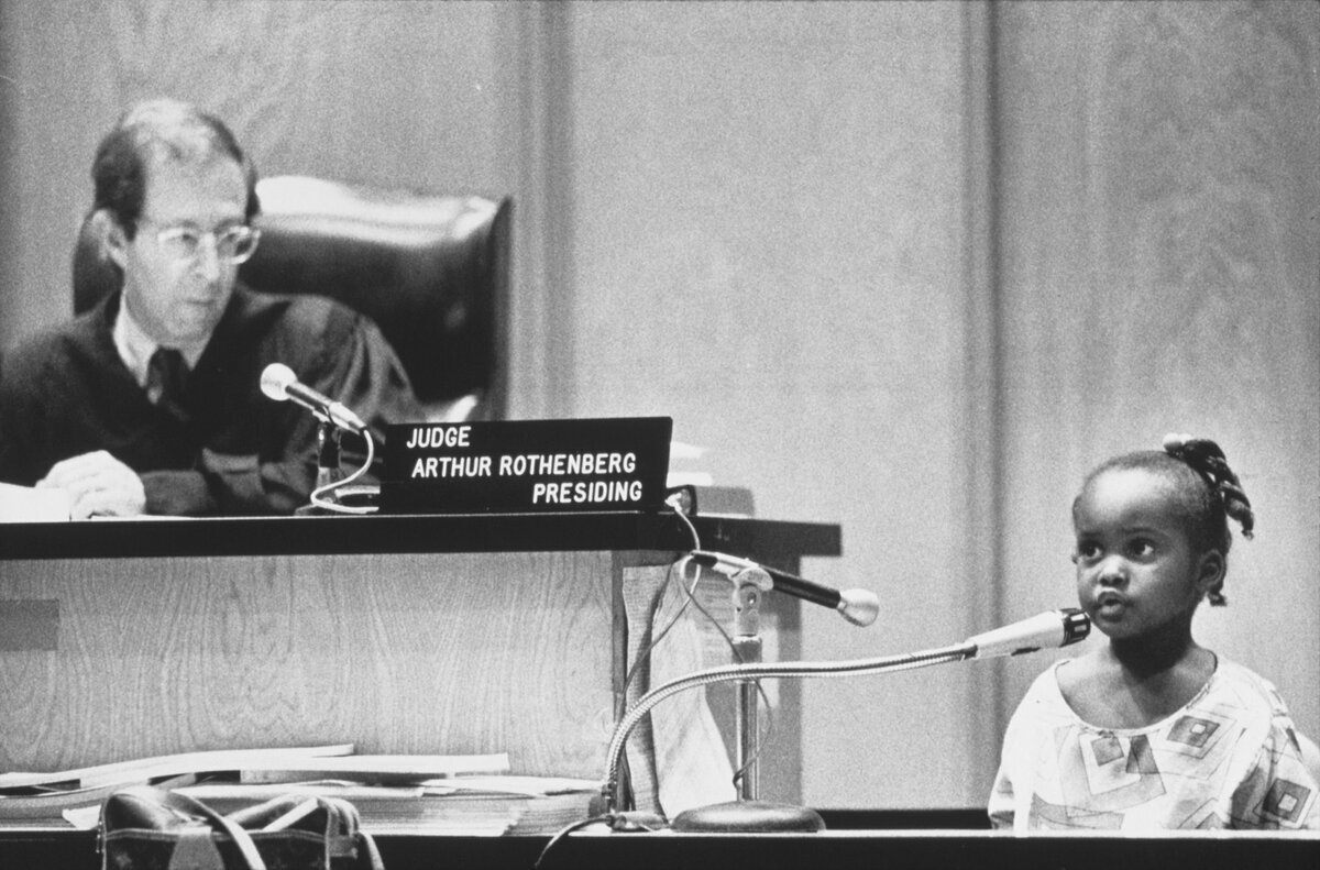 Пятилетняя Дженнифер Роял дает показания в суде относительно убийства ее подруги, свидетелем которого она стала.