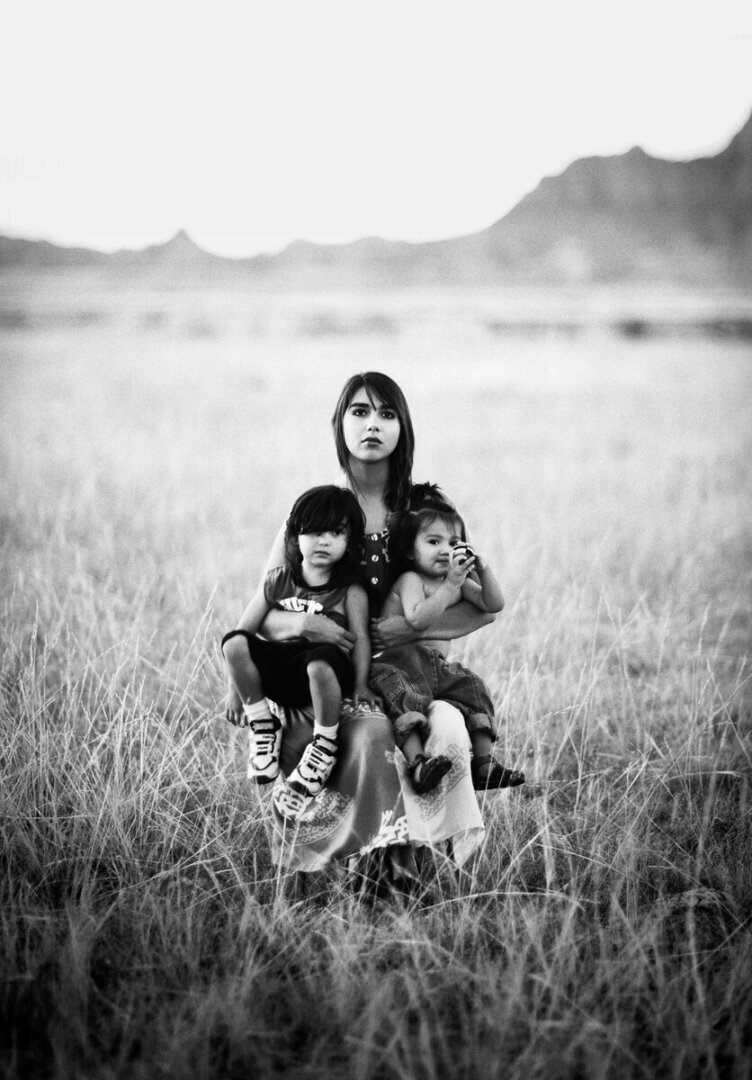 22-летняя Токахевин Клиффорд с двумя сыновьями. Они принадлежат к лакотам, коренным американцам из Южной Дакоты, США. Поражение в битве при Вундед-Ни в 1890 году положило конец их свободы.