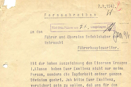 Гитлер отправил телеграмму 2 января 1942 года, за несколько дней до поражения нацистов в битве за Москву.