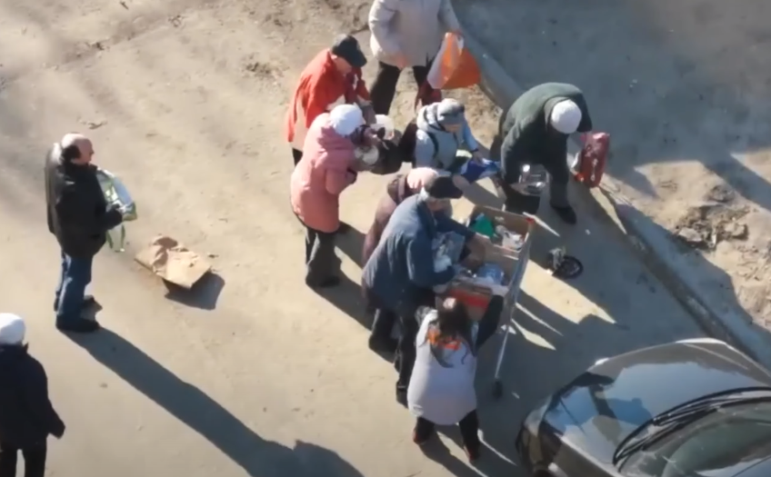 Фото для превью статьи. На фото наши пенсионеры пытаются урвать просроченные продукты, которые продавец выкидывает в урну. ЗАНАВЕС