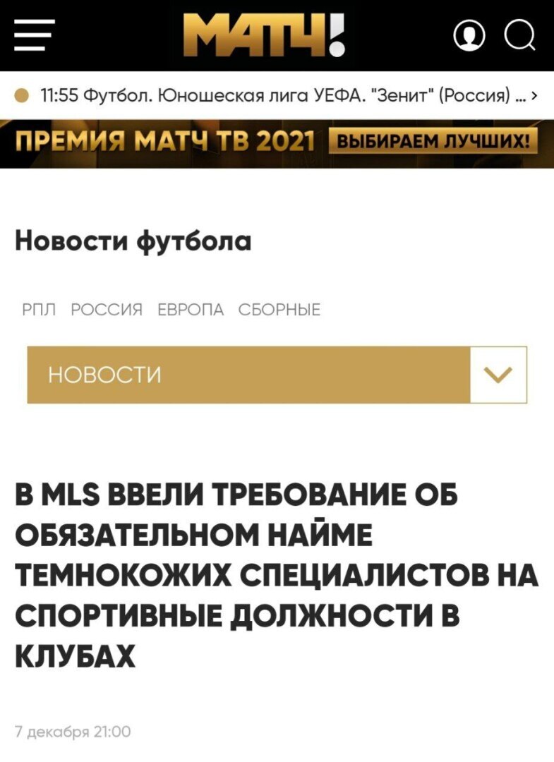 В MLS (футбольная лига США и Канады) ввели общее требование для всех клубов.