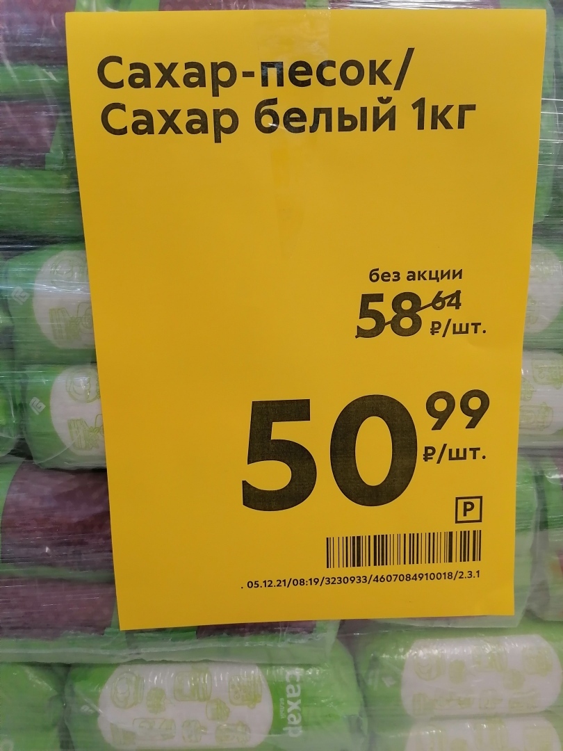 Как и кто будет это делать. Сегодня в пятере увидела вот такой ценник. И это при том, что цена на сахар "загнана в стойло" еще в начале 2021 года на уровне 49-99 руб. за кг.