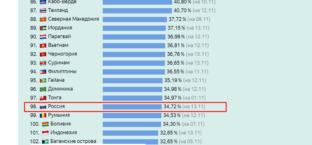 По себе могу сказать, что из моего окружения прививку сделали примерно 30 на 70. Где 70% это те, кто не сделал! А 30% это те,кто сделали.