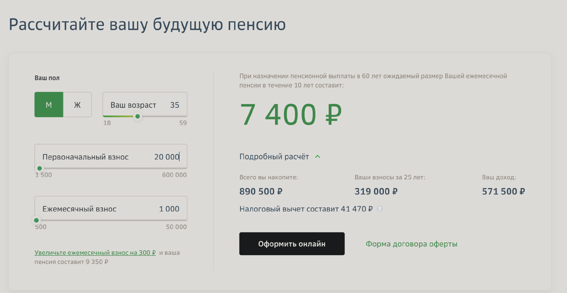 И даже калькулятор будущей пенсии есть.