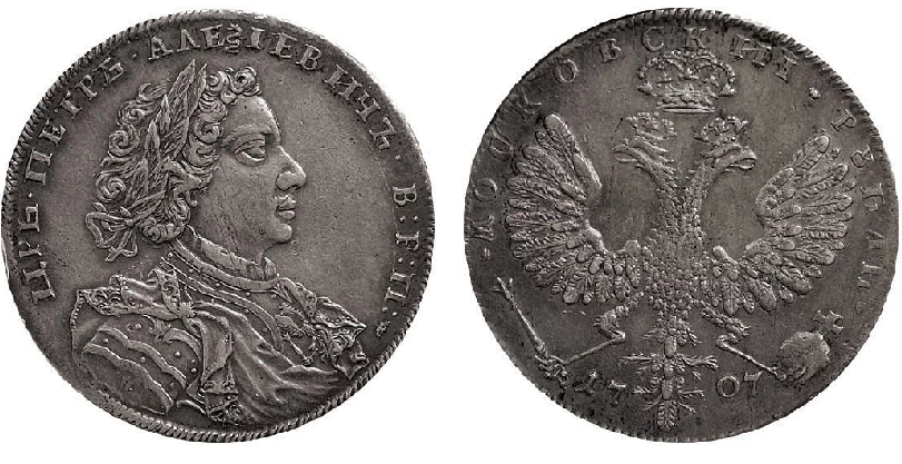 Серебряный рубль, начавшийся чеканиться при Петре I в 1704 году, содержал 25 граммов чистого серебра. Стало быть, тогдашний рубль стоил примерно 1400 нынешних.