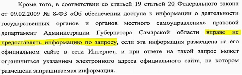 Таким образом, уклоняясь от предоставления запрашиваемых документов на бумажном носителе, должностное лицо администрации Губернатора Самарской области - руководитель правового департамента В.И.Моргунов, осознанно, умышленно нарушил требования законодательства Российской Федерации, а именно: