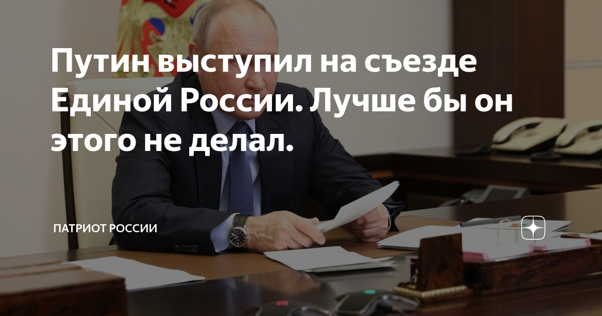 Источник: https://zen.yandex.ru/media/682313alla/putin-vystupil-na-sezde-edinoi-rossii-luchshe-by-on-etogo-ne-delal-61abced2d087c16fc3b36920