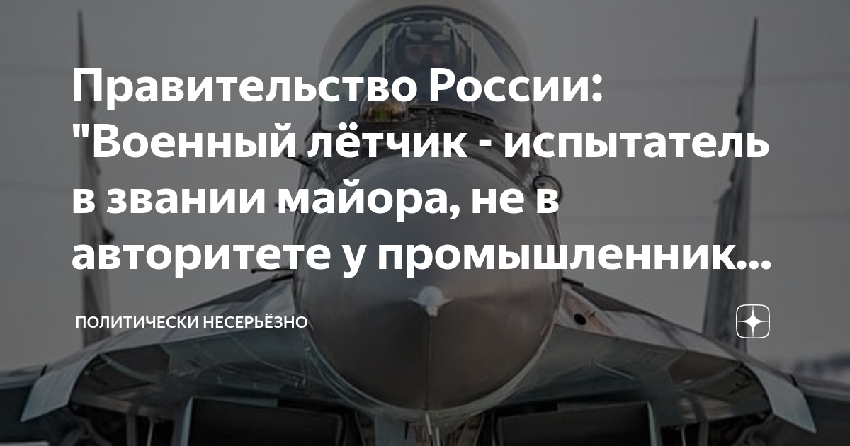 Правительство России: "Военный лётчик - испытатель в звании майора, не в авторитете у промышленников ВПК"...