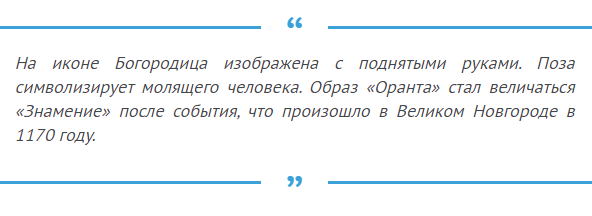 Богородица Оранта появляется на Руси, очевидно, после принятия христианства, с 988 г. А от XII в. известно первое чудо, с которым связано русское наименование «Знамение».