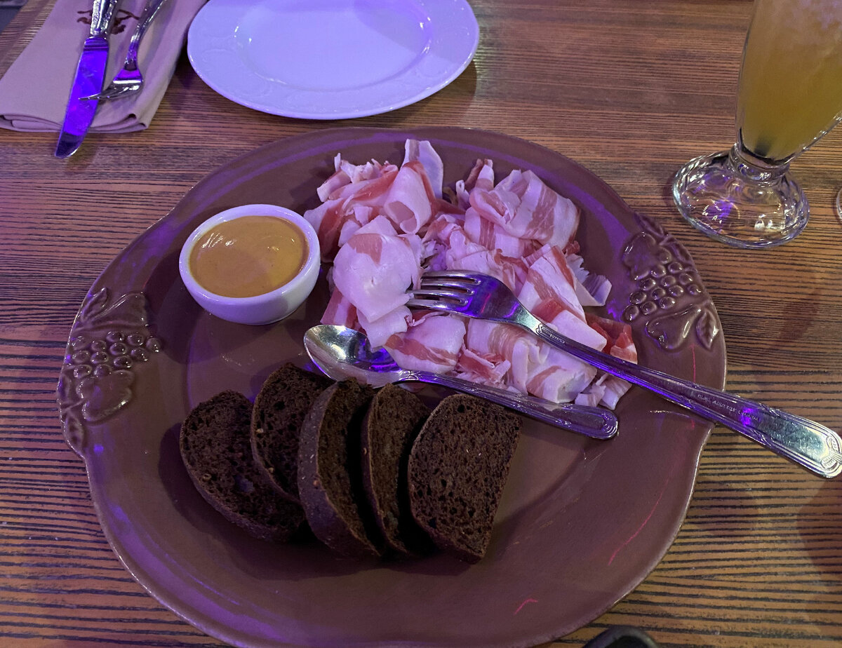 В меню - "Сало с горчицей и бородинским хлебом"! - "То, что нужно", думаю я, и заказываю.